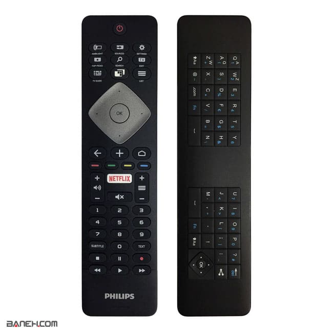طراحی شگفت انگیز با قاب فلزی!! فیلیپس مدل تلویزیون 55PUS6412 را با طراحی شیک و با رنگ بدنهای ترکیبی (نقرهای و سیاه) تولید کرده که وجود این دو رنگ کنار هم جلوه ای بسیار زیبا دارند. قاب نقرهای رنگ کنارهی نمایشگر بسیار باریک طراحی شده تا هنگام روشن شدن تلویزیون، تصاویر شناور در فضا مشاهده شوند. پایه این تلویزیون بسیار شسته و رفته طراحی شده که سطح کوچکی را به خود اختصاص می دهد؛ بنابراین می توانید بر روی میز تلویزیون هایی با سطح کوچک نیز آن را قرار دهید. این پایه از جنس فلز ساخته شده که دارای رنگ نقرهای است و با سطح کناره های قاب بسیار هماهنگ است. این پایه فلزی نازک، ثبات بالایی دارد و به سادگی می تواند وزن تلویزیون را تحمل کند. قسمت پشت تلویزیون محل قرار گیری پورتها های ورودی و خروجی و همچنین لامپ های LED برای تکنولوژی آمبی لایت می باشند. قسمت بالای پنل نازکتر طراحی شده، اما قسمت پایین به دلیل وجود پورتها و اسپیکر کمی ضخیم تر می باشد. ریموت کنترل کیبورد دار فیلیپس، مدل تلویزیون 6412 را همراهی می کند. این ریموت کنترل به واسطهی دکمه های بزرگ و همچنین صفحه کلید عدد و حروف، بسیار تنظیمات را ساده تر از قبل انجام می دهد.