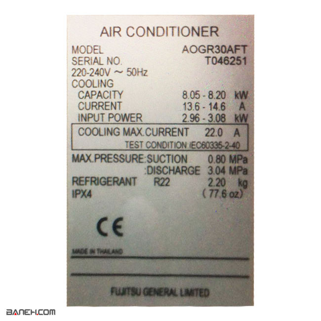 کولر گازی اجنرال 30000 سرد ASGA30AFT Fujitsu General Split