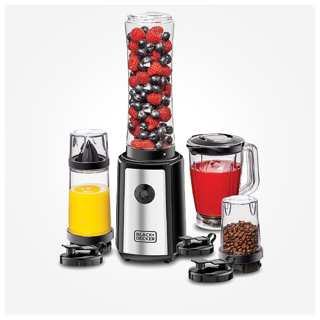 BLACK+DECKER 300W 16 Piece 4-in-1 Personal Compact Sports Blender/Smoothie Maker with Citrus Juicer & Grinder Mill SBX300BCG-B5