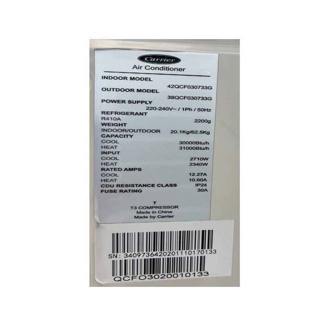 جمع بندی کولر گازی کریر 30000مدل 42QCF030733G