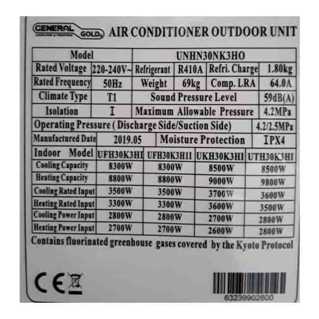 General Gold Ceiling Duct Split Air Conditioner 30000 UNHN30NK3HO