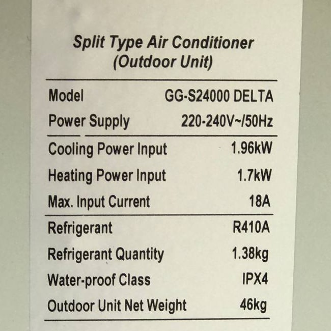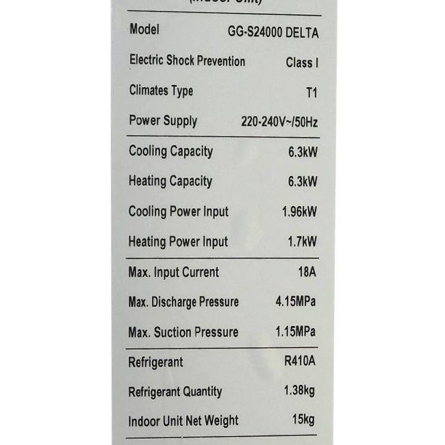 GG-S24000 DELTA General Gold Split Air Conditioner R410a T1 24000BTU 2021