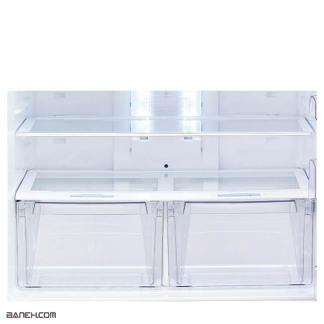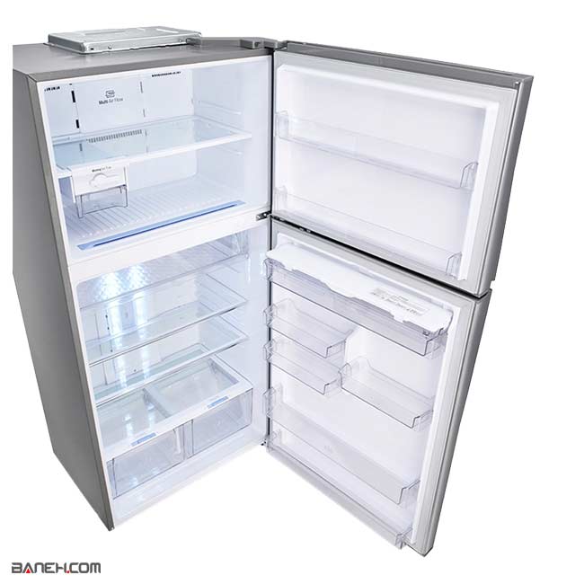 این دستگاه دو درب دارد که طبق معمول درب کوچکتر برای محفظه فریزر و درب بزرگتر در پایین، مربوط به یخچال می باشد که هر دوی آن ها با دستگیره های همرنگ یخچال شما را یاری می دهند تا به قفسه ها و طبقه ها دسترسی داشته باشید. با باز کردن درب هر کدام از محفظه ها و روبرو شدن با فضای گسترده و تمیز، بار دیگر از خریدتان خوشحال خواهید شد! محفظه یخچال با ظرفیت اصلی 382 لیتر به 3 طبقه شیشه ای شفاف، دو کشو بزرگ میوه و سبزی،6 قفسه روی درب و یک منطقه تازه سازی مواد Fresh O Zone تقسیم بندی شده که مواد غذایی و خوراکی مورد نیاز شما را بسیار منظم در خودش جا می دهد. همانطور که مشاهده می کنید طبقه های این یخچال قابلیت این را دارند که کمی پایین تر یا بالاتر نصب شوند یعنی شما می توانید برای قابلمه های بزرگتر غذا یا پارچ های آب جا باز کنید؛ همچنین درب یخچال محلی امن و مناسب برای قرارگیری انواع آبمیوه، سس ها، شیشه های مربا و تخم مرغ است و این کمک می کند تا روی طبقه ها، فضای بیشتری برای نگهداری خوراکی و غذاهایتان در اختیار داشته باشید.