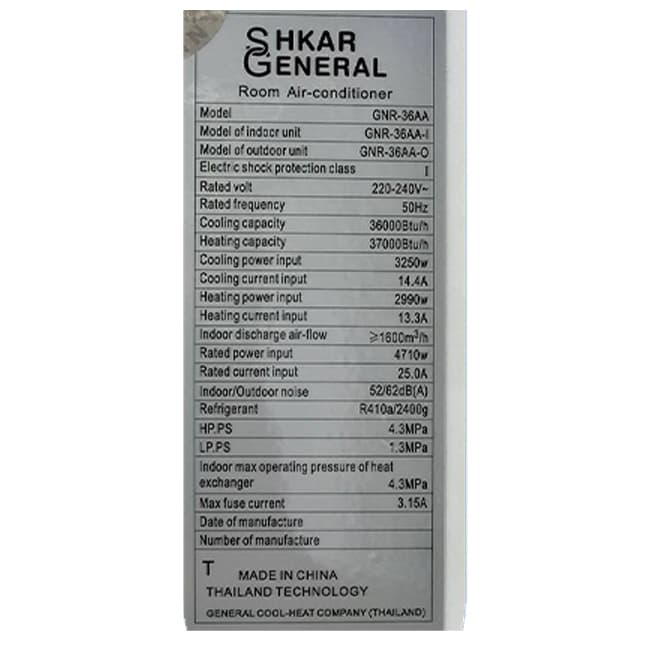 کولر گازی جنرال شکار 36000 GNR-36AA-I T3 کم مصرف