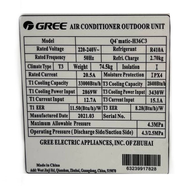 نیم نگاهی به کولر گازی گری کیو فورماتیک 36000 کم مصرف Q4 MATIC-P36C3 سرمایشی و گرمایشی با قابلیت خنک کننده سریع