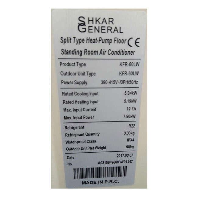 نیم نگاهی به کولر گازی ایستاده جنرال شکار 60000 KFR-60LW General Shkar R22 T3