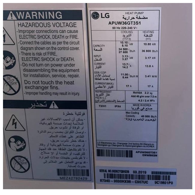 LG APNW36GT3S1 APUW36GT3S1 Floor Standing Air Conditioner R410A T3 36000Btu