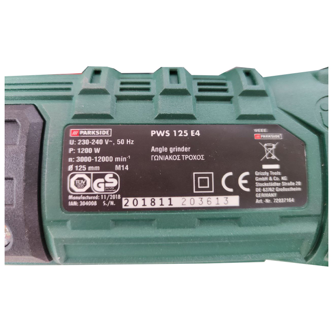PWS 125 E4 Parkside Angel Grinder 1200W 12000MIN 125MM M14