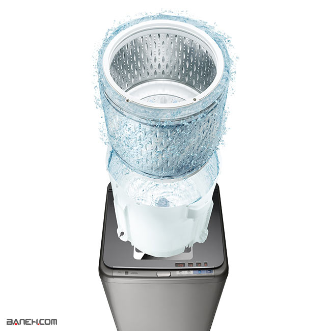 کنترل پنل این ماشین لباسشویی در قسمت بالا قرار داده شده تا دسترسی به آن ساده باشد. شما می توانید جهت تنظیم سطح آب، زمان شستشو، تعداد شستشو و زمان چرخش به سادگی با فشار دادن دکمه بالا و یا پایین، آن ها را تنظیم کنید. به سادگی با فشار دادن دکمه Water Power، این لباسشویی به شما اجازه می دهد جریان آب را در 5 مرحله (از 2 تا 2-) تنظیم کنید. توان بالاتر را برای لباسهای ضخیم تر و توان کمتر را برای لباسهای ظریف انتخاب کنید. شما می توانید آب را در طول شستشو با توجه به نیاز اضافه کنید؛ به سادگی دکمه شاور پلاس « Shower Plus » را فشار دهید تا میزان آب یک بار افزایش یابد. برای متوقف کردن این فرایند می توانید دکمه Shower Plus را یک بار دیگر فشار دهید. سایر دکمه ها را نیز می توانید برای سایر تنظیمات از جمله انتخاب برنامه دلخواه، تاخیر در شستشو و … استفاده کنید. این ماشین لباسشویی دارای صفحه نمایشگر LED است که می توانید بر روی آن مدت زمان باقی مانده را مشاهده کنید.