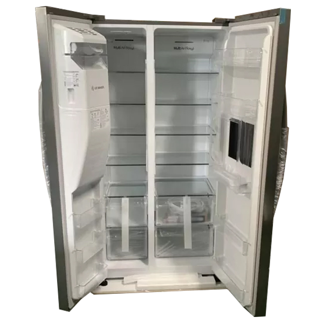 یخچال ساید بای ساید دو درب توربو مدل SA 370 SS متصل به آبشهری موتور اینورتر کم مصرف برچسب انرژی++A