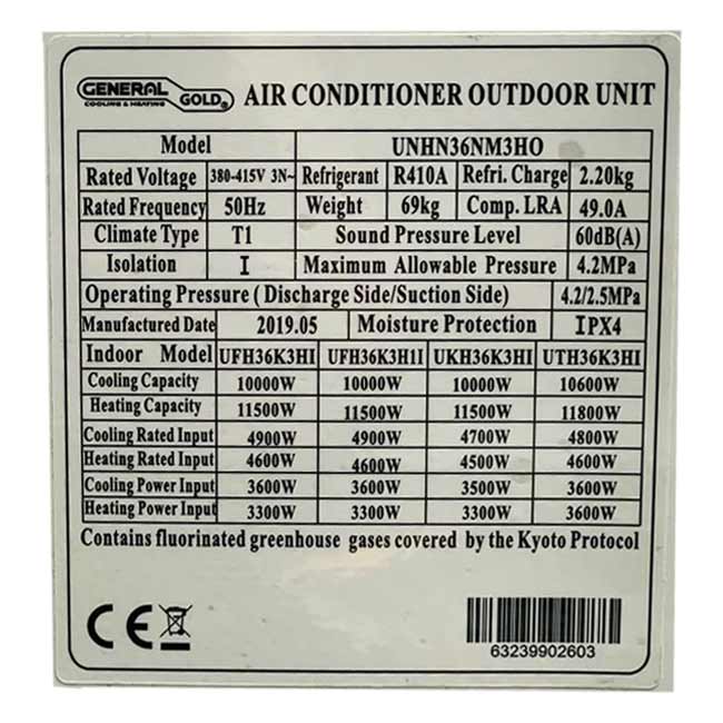 کولر داکت اسپلیت جنرال گلد سرد و گرم General UNHN36NM3HO
